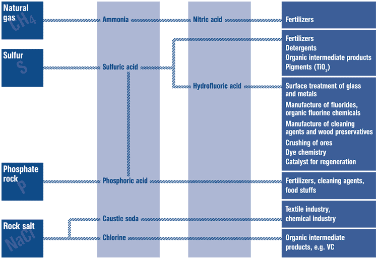 Starting material and end products in inorganic chemicals